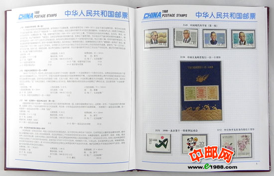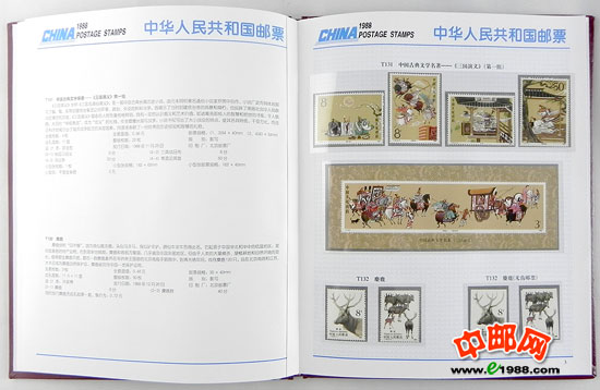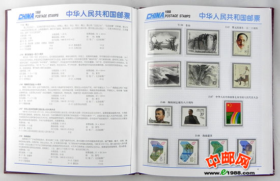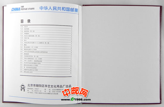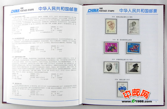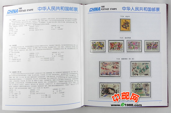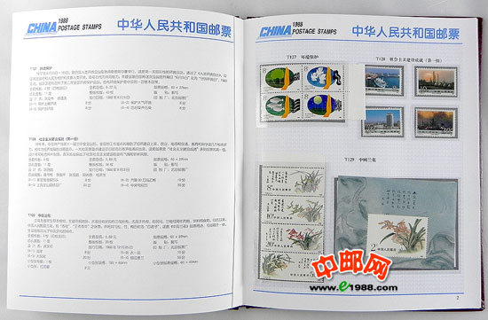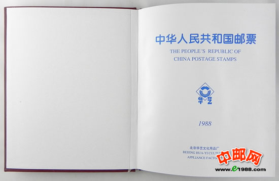 1988年册,包含1988年中华人民共和国邮电部发行的全部邮票和小型张,不含1988年评选纪念张。