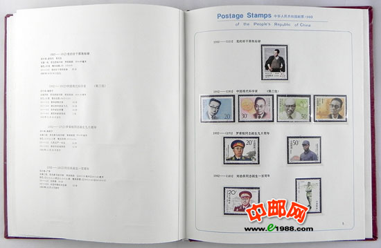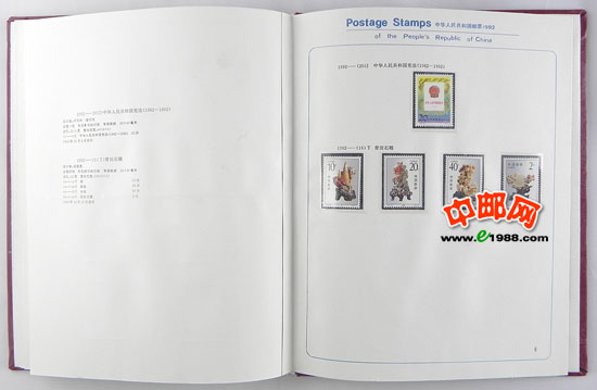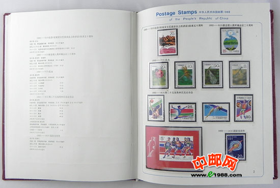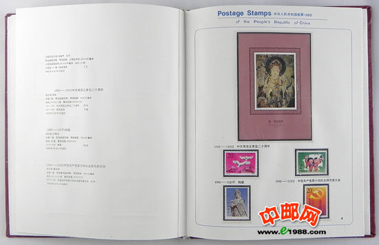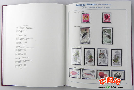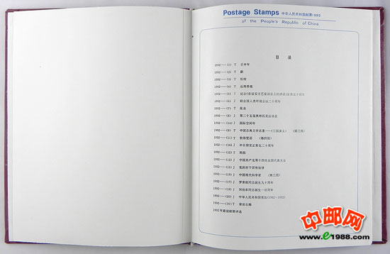 包含1992年中华人民共和国邮电部发行的全部邮票和小型张,不含1992年评选纪念张。