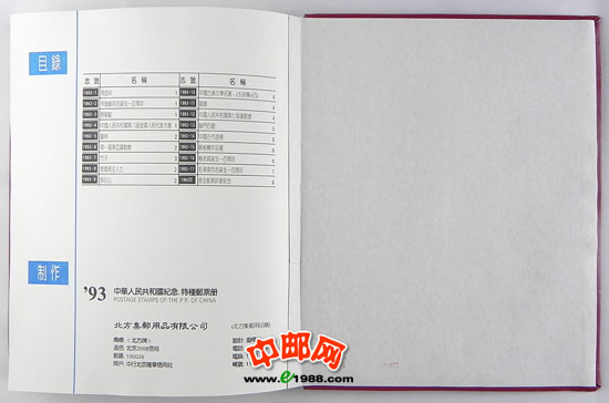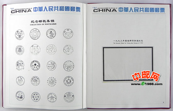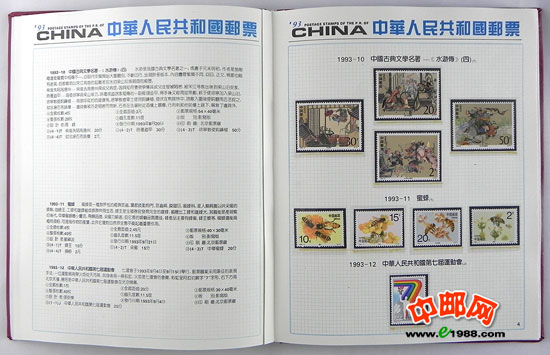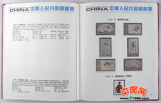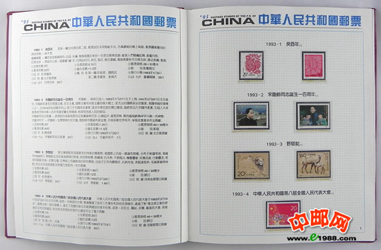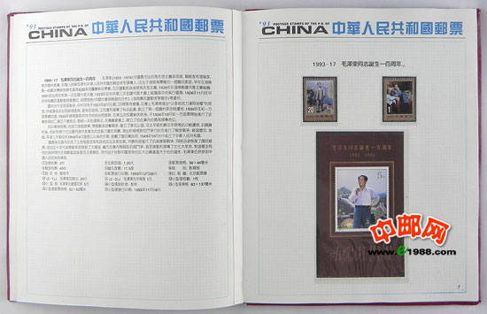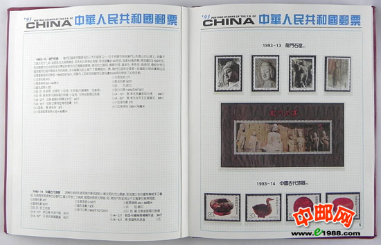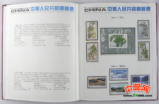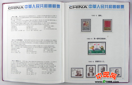 1993年册,包含1993年国家邮政局发行的全部邮票和小型张,不含1993年评选纪念张。