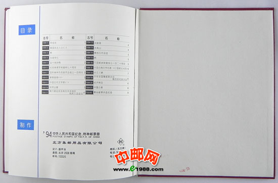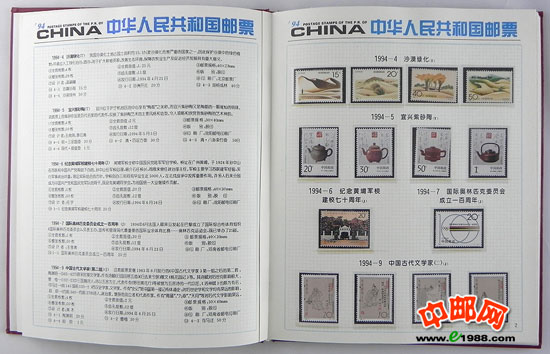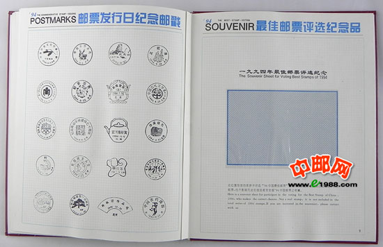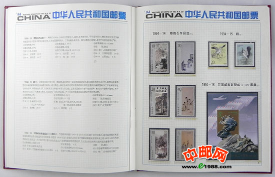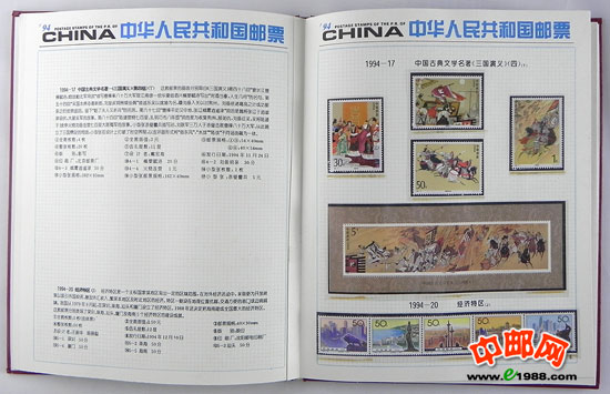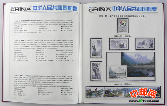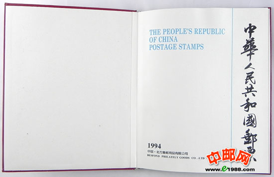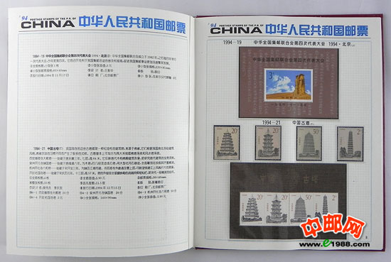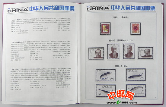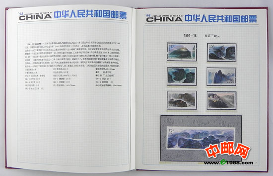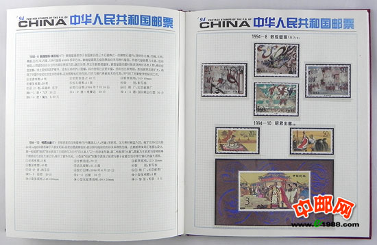 1994年册,包含1994年国家邮政局发行的全部邮票和小型张,不含1995年评选纪念张。