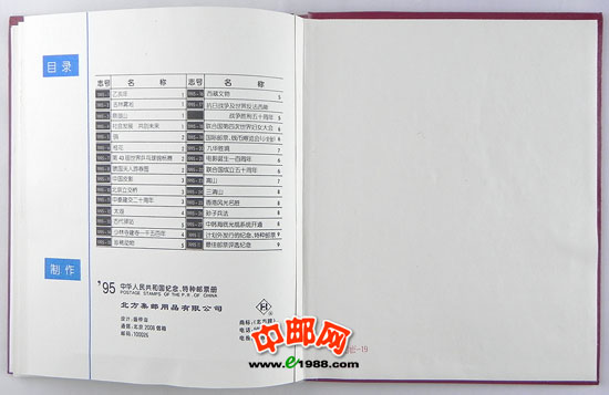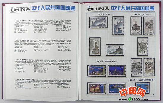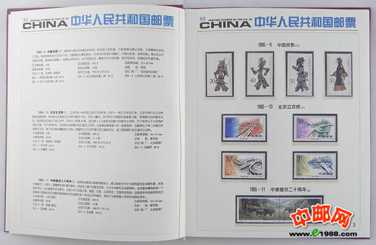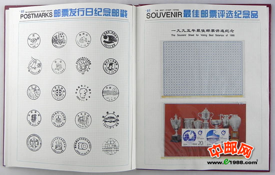 1995年册,包含1995年国家邮政局发行的全部邮票和小型张。含世乒赛小全张,不含桂花无齿小全张,不含1995年评选纪念张。