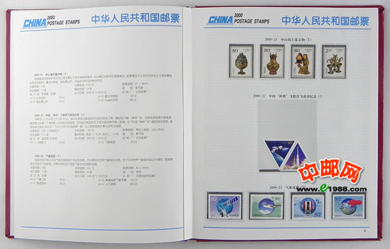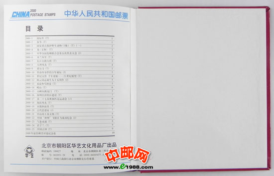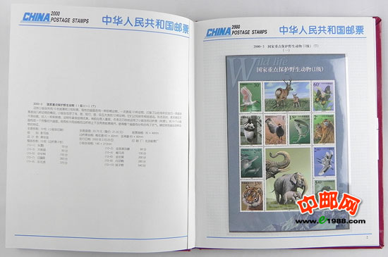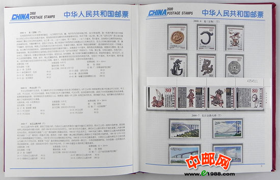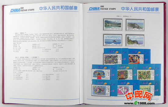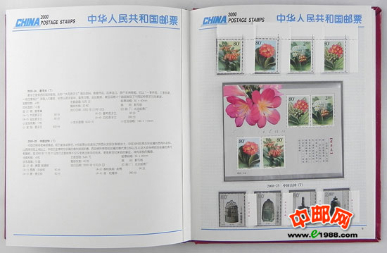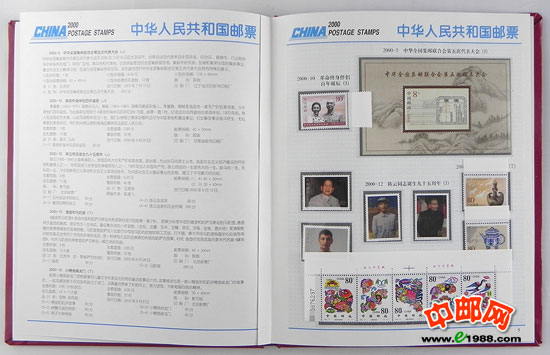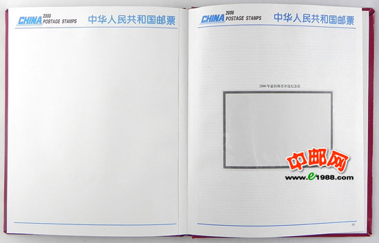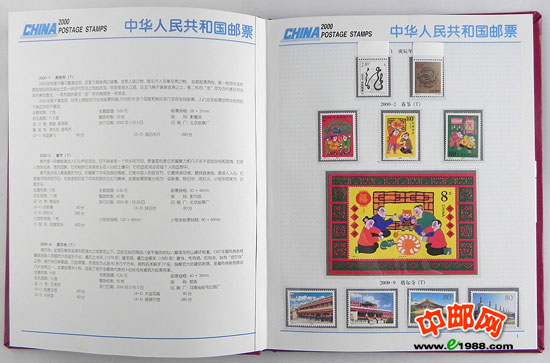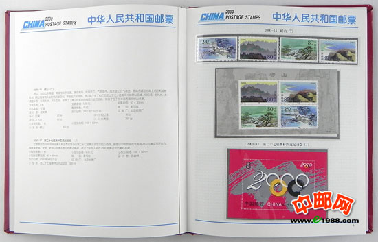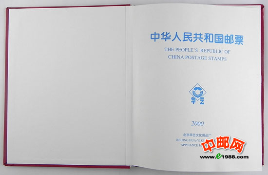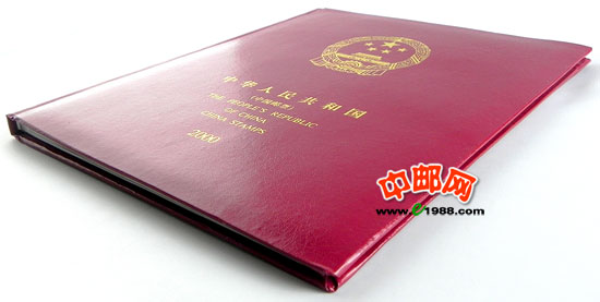 2000年册,包含2000年国家邮政局发行的全部邮票和小型张,不含双加字金箔张,不含2000年评选纪念张。