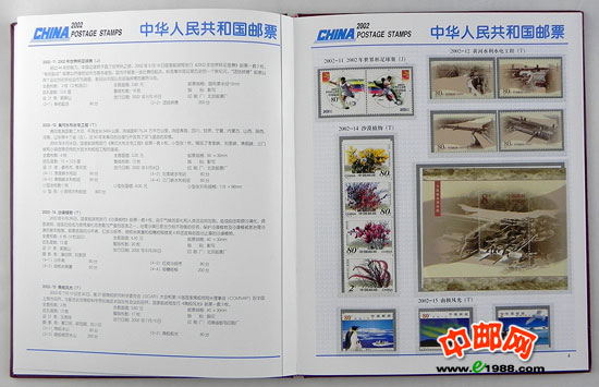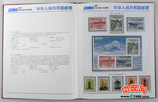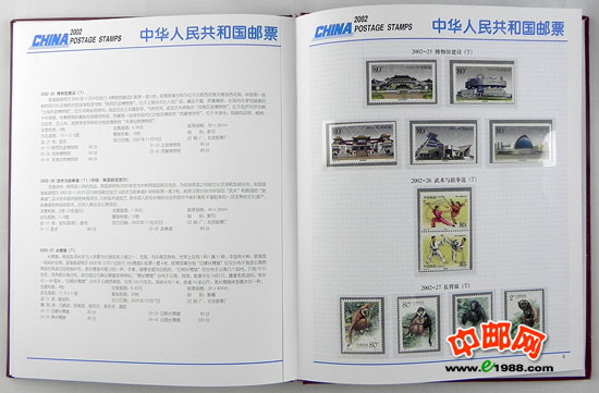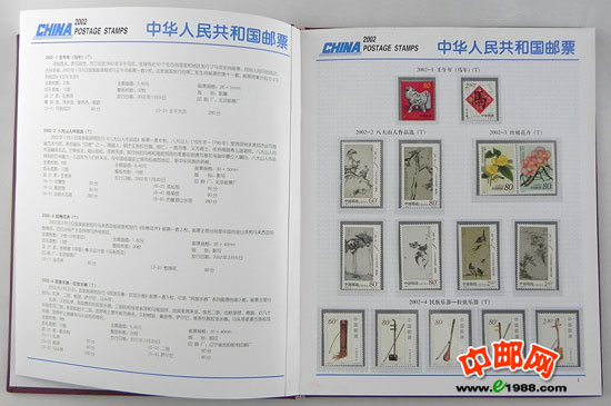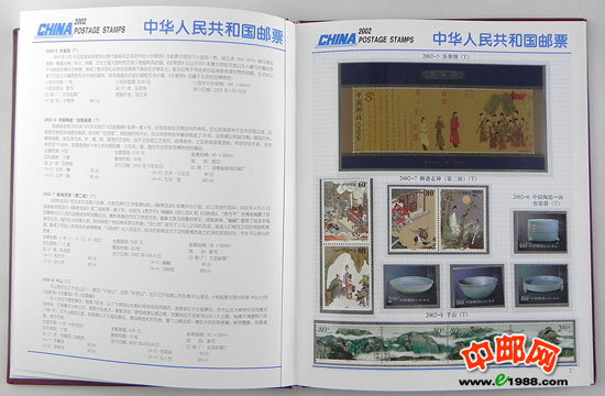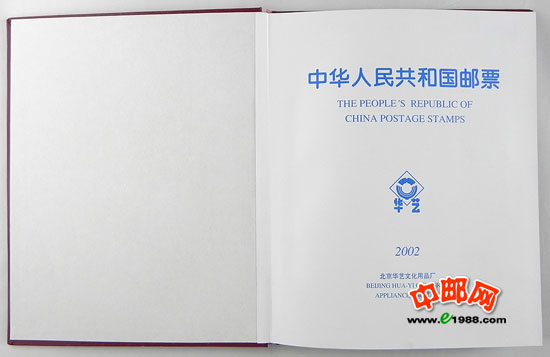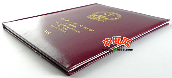 2002年册,包含2002年国家邮政局发行的全部邮票和小型张,不含2002年评选纪念张。