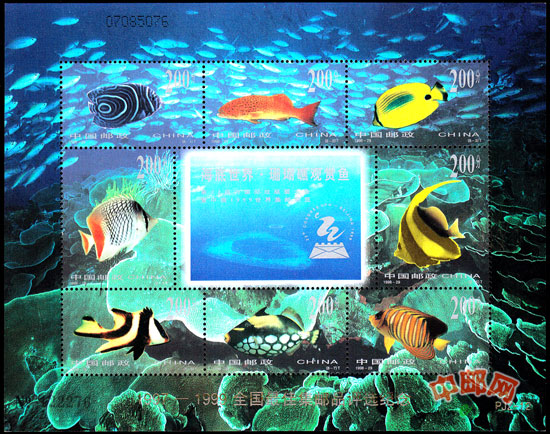 经邮电部批准发行,在1988-29 海底世界 小型张上加印金色“1997—1999全国最佳集邮品评选纪念 ”字样。