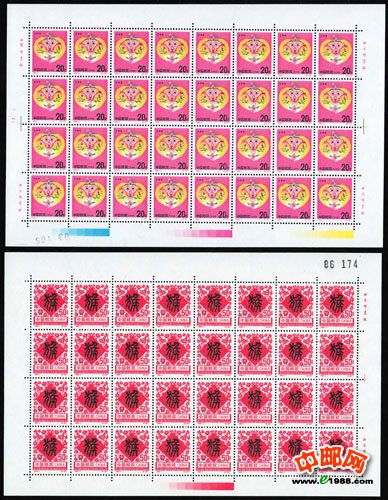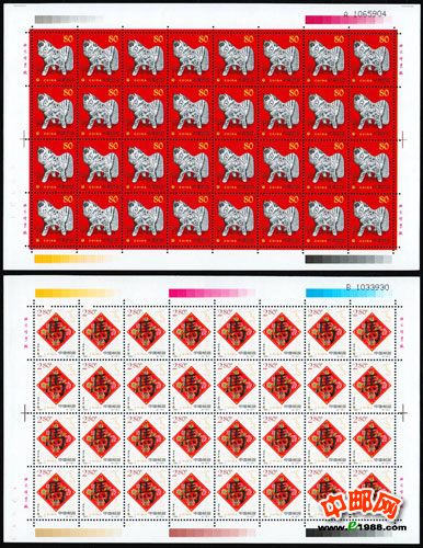 十二生肖品种历来就被中国人所接受和推崇,无论是邮票、磁卡还是钱币,都毫不例外。尤其是生肖版票,更是受到人们的喜爱。“第二轮整版生肖票”是既第一轮生肖票后,又推出的一款邮票界的旷世著作。我国邮政发行的第二轮生肖票十二种,每套两枚,版票票幅规格为240x158毫米,全张由32枚单张邮票组成,版式独特统一,设计别具一格,《第二轮十二生肖整版大全套.》珍藏册里包含24张整版生肖邮票,从传统中挖掘中国民俗文化的精髓,将国人喜爱的生肖文化发扬光大。第二轮生肖整版大全套是中国唯一一套生肖整版大全套,注定将在中国珍邮史上扮演重要角色。