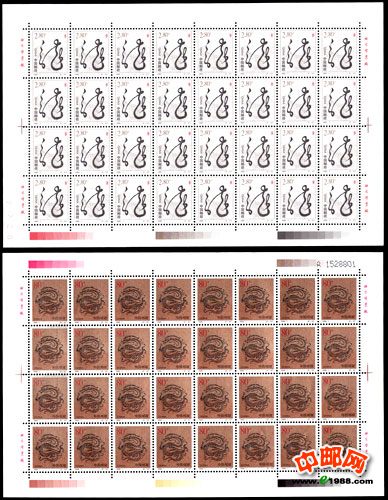 首先,从邮票本身来讲,二轮生肖邮票整体规划性强,表现在,一套两枚,一字一像,一明一暗,字体三年一换,顺序为篆书,隶书,草书,楷书。内容极其丰富,泥人,剪纸,汉代瓦上的龙图等。印刷、设计同一轮一样都是采用影雕版。