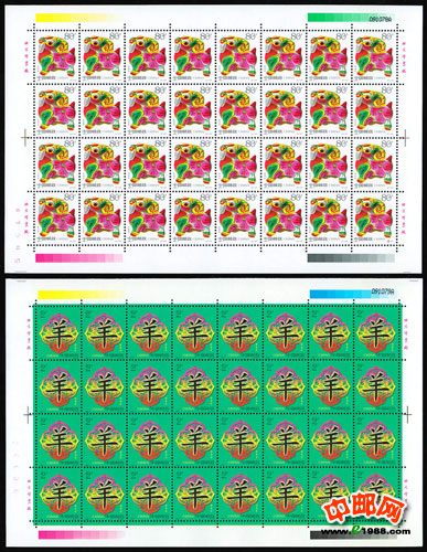 2003年第二轮生肖邮票羊票的设计采用了中国的腊梅、牡丹、荷花、菊花四季吉祥花卉,有美感也符合羊大为美的内涵。生肖羊邮票也被称之为“回头羊”,是对整个一轮生肖票的回顾,也是对过去十二年中国发展的回望!具有极高的收藏意义。