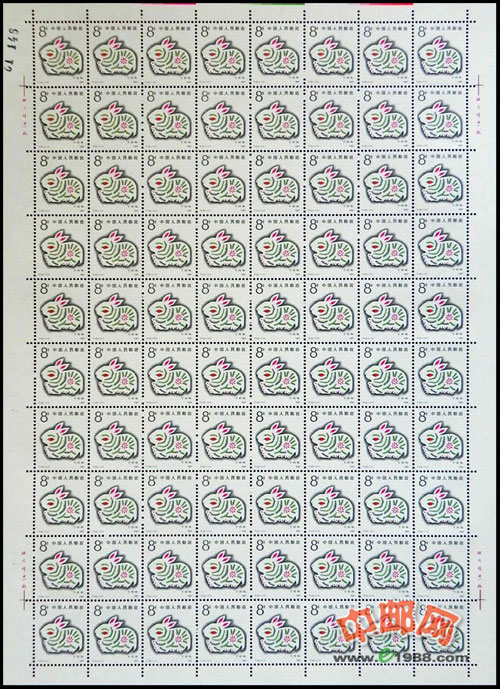 本套邮票的设计者在设计这一充满中国民俗文化色彩的主题时,采取了中国民间传统工艺美术的手法,尤其借鉴了陕北黄土高原上的剪纸和泥玩具的一些技法。图案底色为白色,显得纯净,设计者所画的兔子不用黑色,除拙朴的轮廓外,施以逐渐浅淡的灰色,以突出柔和洁白的兔身。设计者汲取了剪纸的表现手法作为装饰因素,配以品红、品绿色,以增强清新之感。