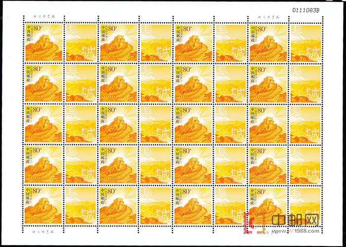 邮票规格:30mm×30mm附票规格:25mm×30mm或30mm×25mm版票规格:250mm×180mm每版20枚,附票带有“长城”字样图案。中邮网出售的所有个性化邮票、个性化小版票均保真保品相,请放心购买!