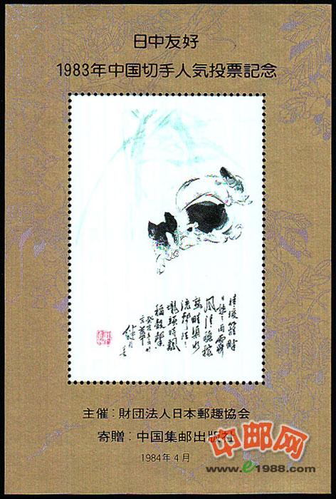 图案是著名画家刘继卣的《双猪图》,对日本的参评者,中方特提供加印日文纪念字样的相同图案纪念张寄赠。