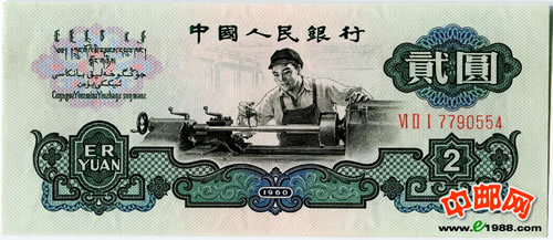 【藏品名称】60年版贰圆车床工人(古币水印)