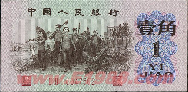 【藏品名称】62年版 壹角 教育与生产劳动相结合(红三平)