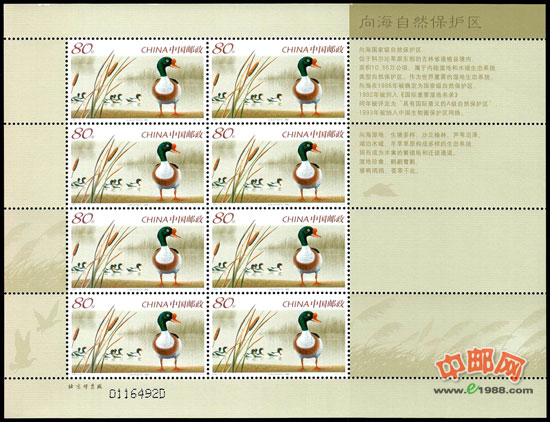 1992年,中国加入了《关于特别是作为水禽栖息地的国际重要湿地公约》后,向海自然保护区即被列入《国际重要湿地名录》,为中国七大国际重要湿地之一。国家邮政局曾于2005年7月30日发行《向海自然保护区》特种邮票一套四枚。