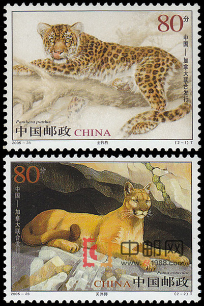 为纪念我国与加拿大建交35周年,两国联合发行邮票一套2枚。