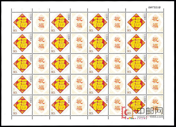 每版20枚,附票带有“祝福”字样图案。
