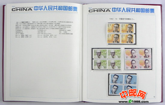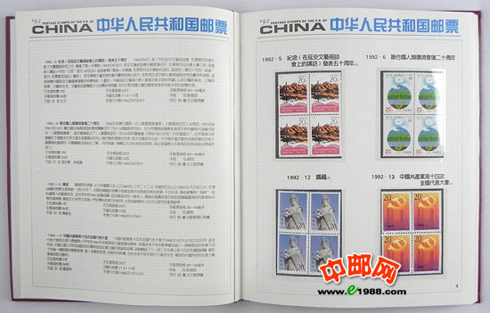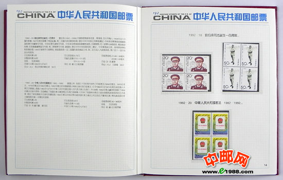 包含1992年国家邮政局发行的全部邮票和小型张,邮票是方连,小型张也是四份。