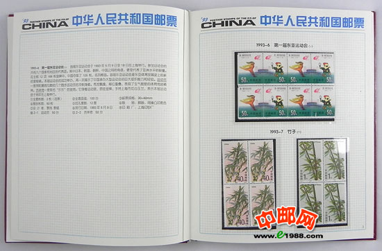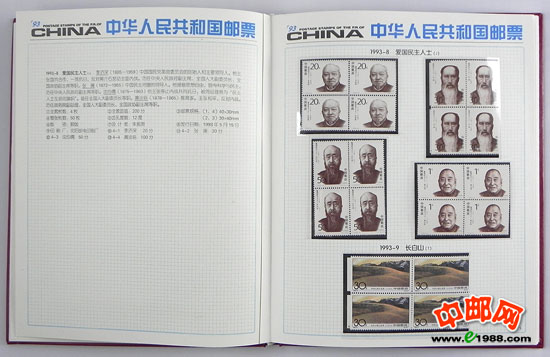 包含1993年国家邮政局发行的全部邮票和小型张,邮票是方连,小型张也是四份。