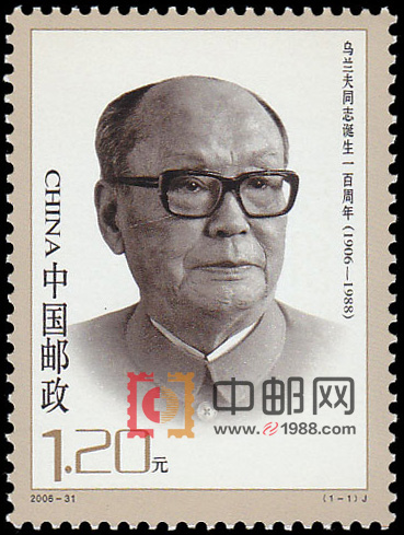【图案面值】(1-1)J 乌兰夫同志诞生一百周年 1.20元