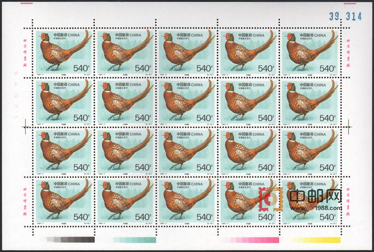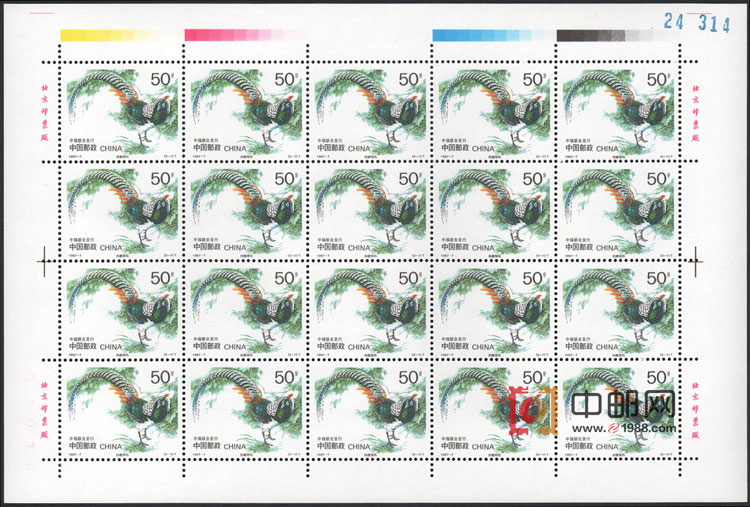 ZBP-1997-7 珍禽(中国和瑞典联合发行)(整版票),两张一版,一版20套票。全品,由于票幅较大,边纸可能会有少许小软折,属正常现象。购买请仔细查看大图。