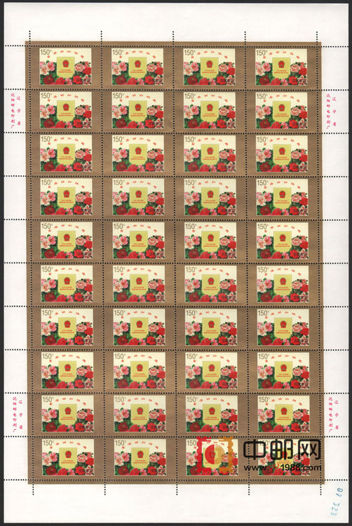 ZBP-1997-10 香港回归祖国(整版票),两张一版,一版40套票。全品,由于票幅较大,边纸可能会有少许小软折,属正常现象。购买请仔细查看大图。