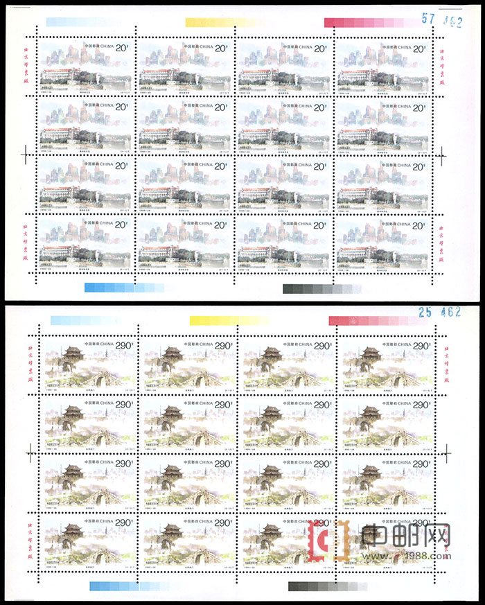 ZBP-1996-28 城市风光(中国和新加坡联合发行)(整版票),两张一版,一版16套票。全品,由于票幅较大,边纸可能会有少许小软折,属正常现象。购买请仔细查看大图。