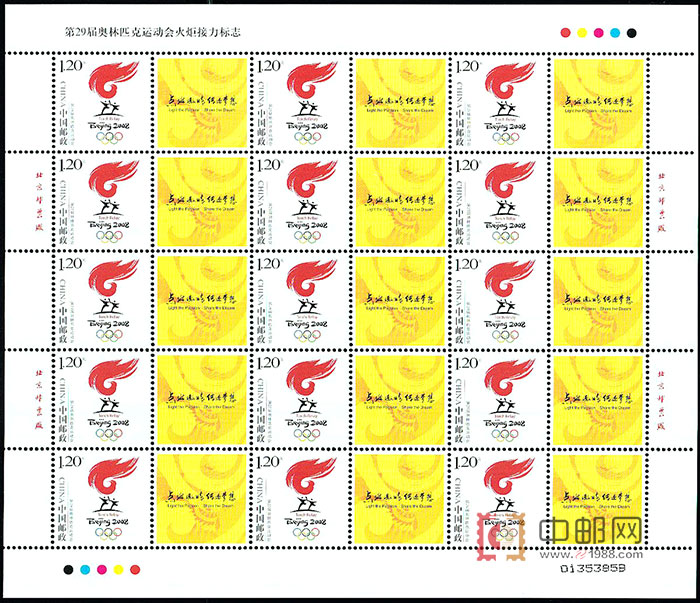 每版15枚,附票带有“点燃激情 传递梦想”字样图案。