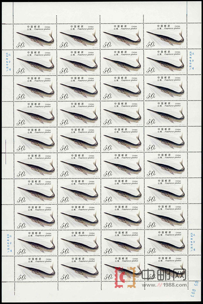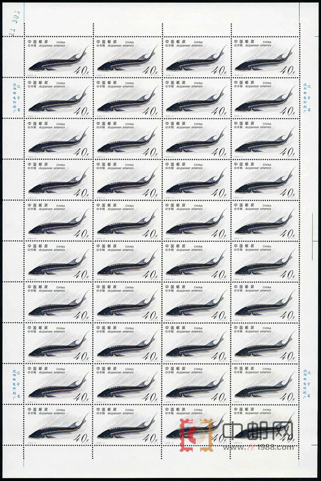 - 商品详情:ZBP-1994-3 鲟(整版票),四张一版,一版40套票。全品,由于票幅较大,边纸可能会有少许小软折,属正常现象。购买请仔细查看大图。