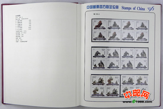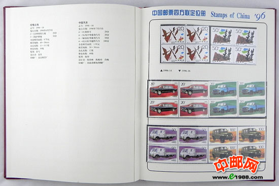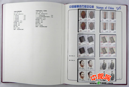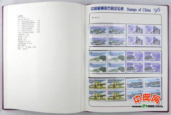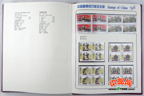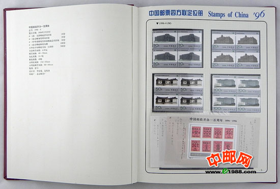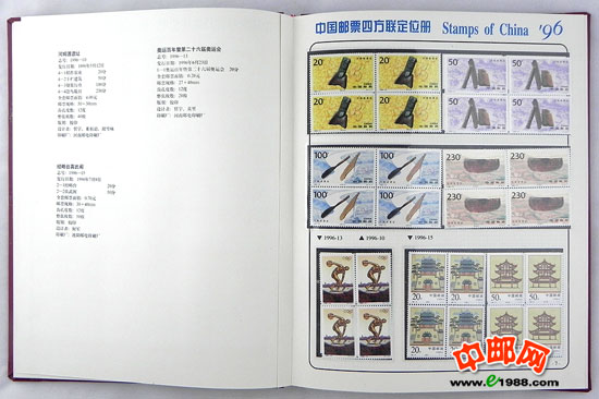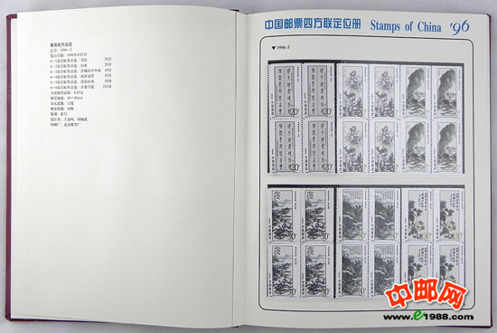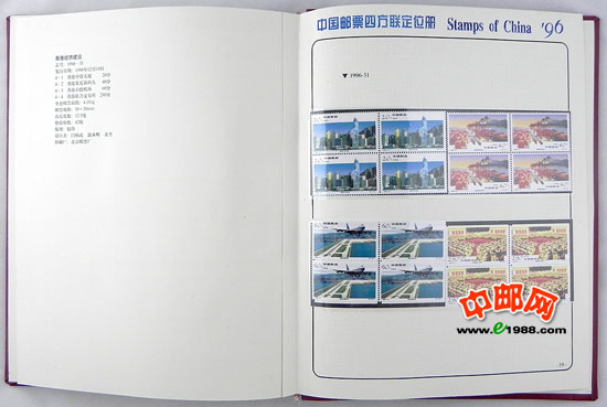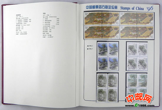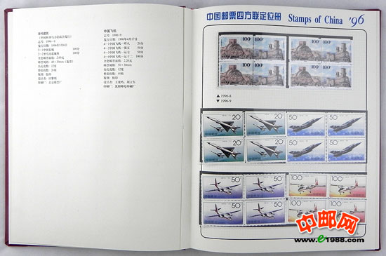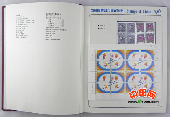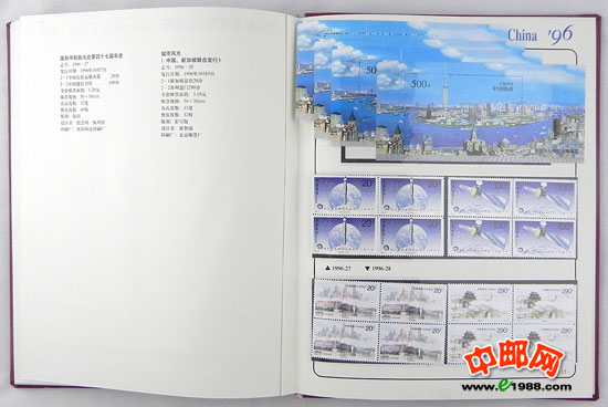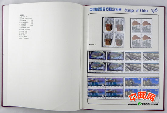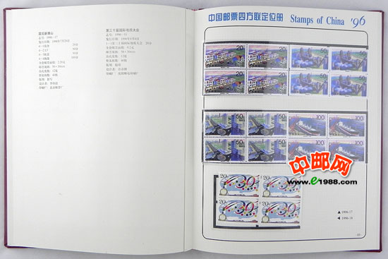 包含1996年国家邮政局发行的全部邮票和小型张,邮票是方连,小型张也是四份。