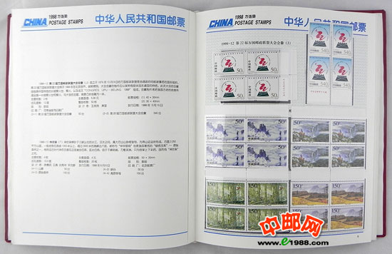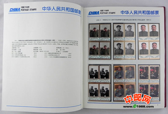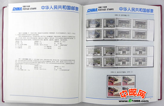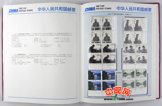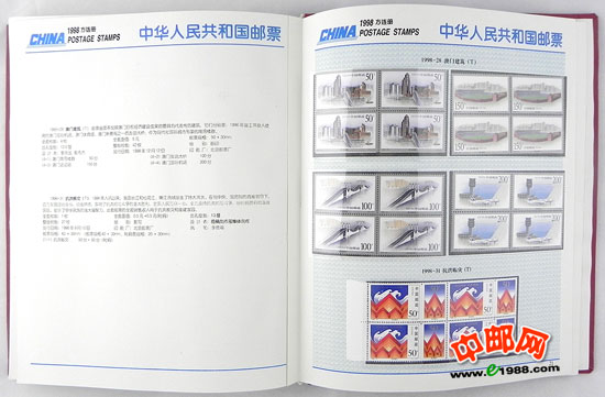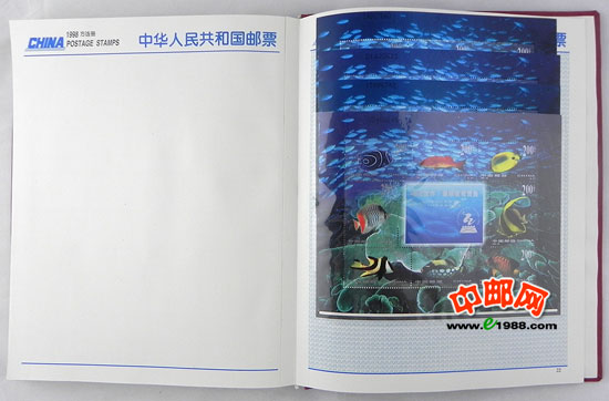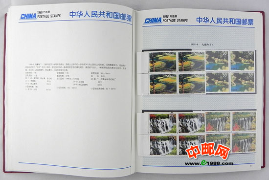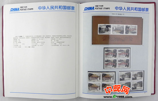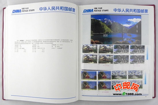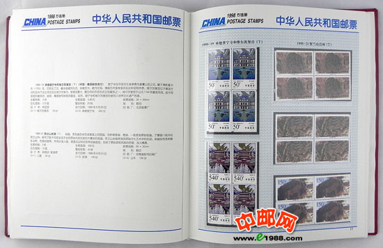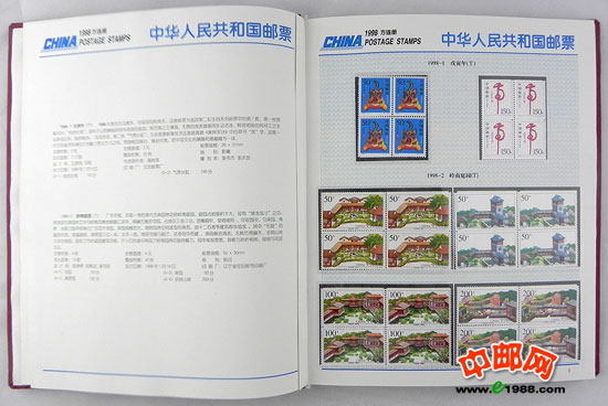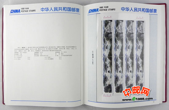 包含1998年国家邮政局发行的全部邮票和小型张,邮票是方连,小型张也是四份。