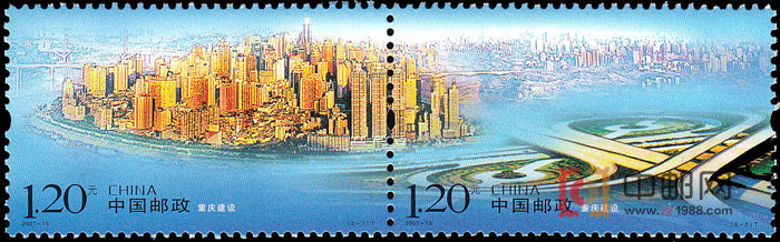 2007年6月8日,国家邮政局发行“重庆建设”特种邮票一套2枚,此票为连体邮票,邮票上图案一为晨曦中的渝中半岛,图案二为二郎立交,两种图案通过两江交汇在了一起。