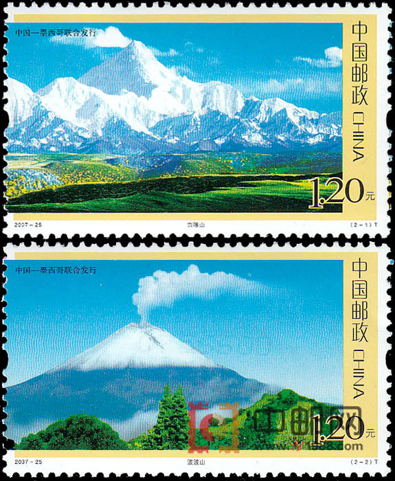2007年11月22日,国家邮政局与黑西哥邮政部联合发行“贡嘎山与波波山”特种邮票一套2枚,主图分别为“贡嘎山”和“波波山”,面值均为1.2元。