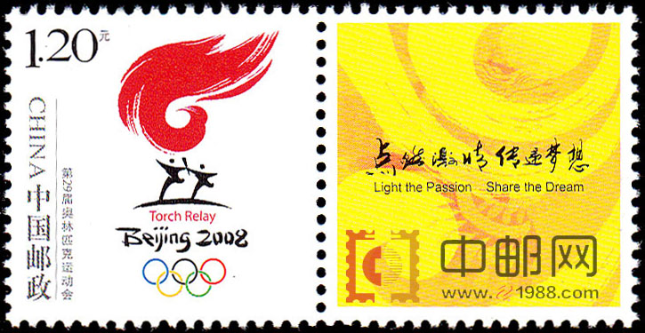 每版15枚,附票带有“点燃激情 传递梦想”字样图案。