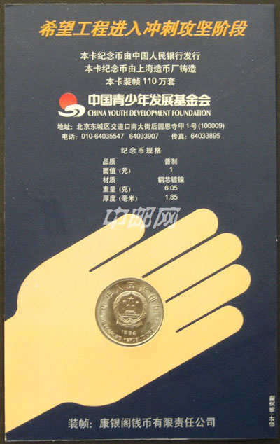 ZZB-15 “希望工程”实施5周年纪念币(康银阁装帧)发行未配证书