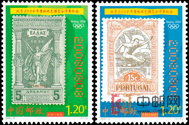 2008年8月8日发行《北京2008年奥林匹克博览会开幕纪念》纪念邮票1套2枚,小型张1枚。