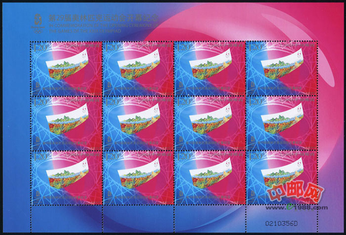 ZBP-2008-18 第29届奥林匹克运动会开幕纪念(整版票),一张一版,一版12套票。全品,由于票幅较大,边纸可能会有少许小软折,属正常现象。购买请仔细查看大图。