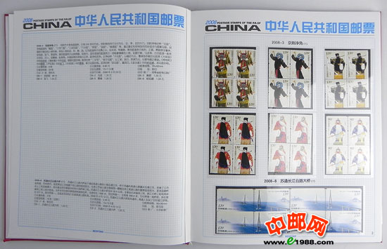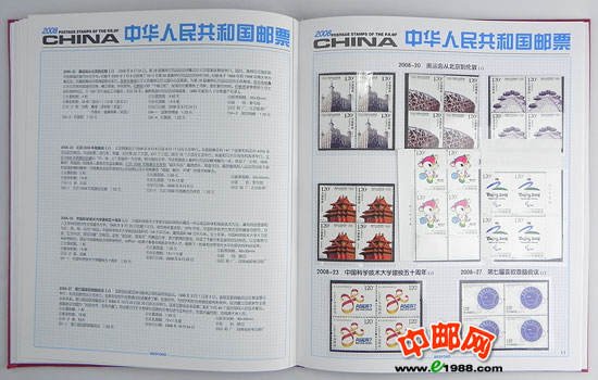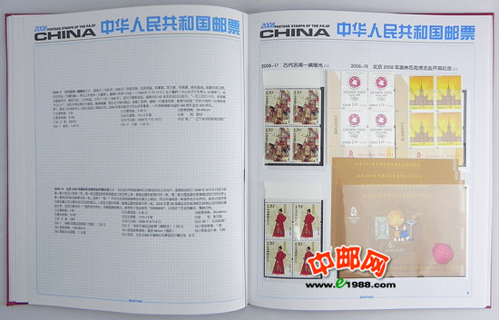 包含2008年国家邮政局发行的全部邮票和小型张,邮票是方连,小型张也是四份。