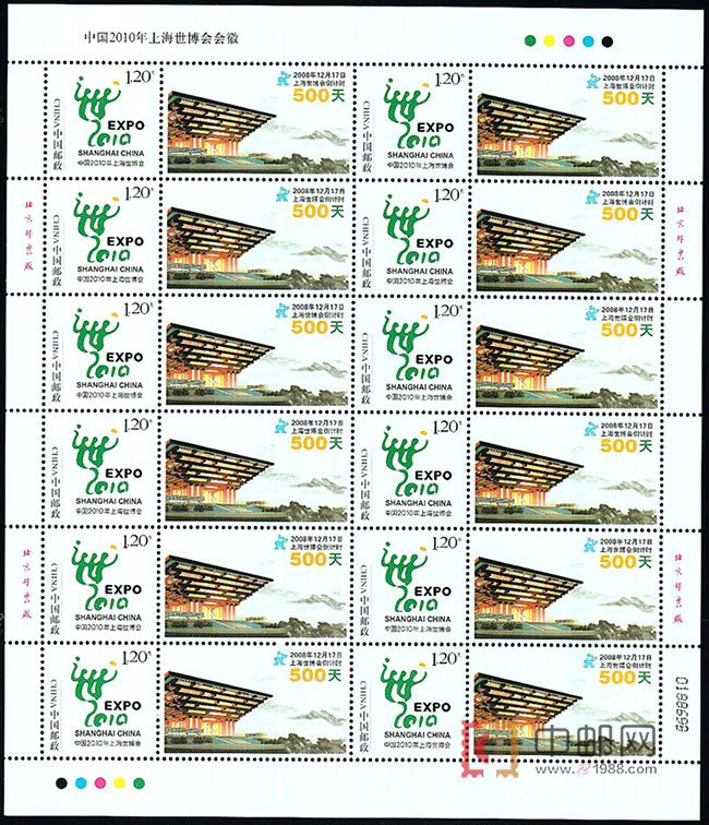 每版12枚,附票带有“2008年12月17日上海世博会倒计时”字样图案。