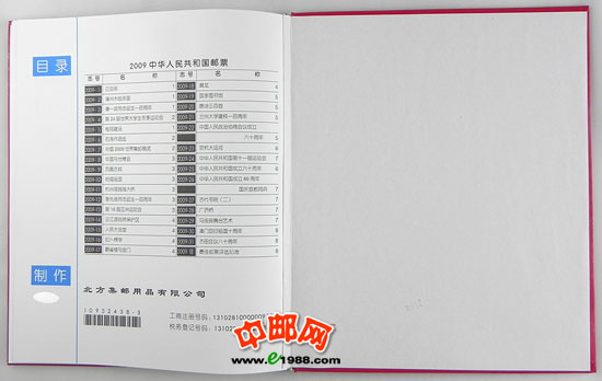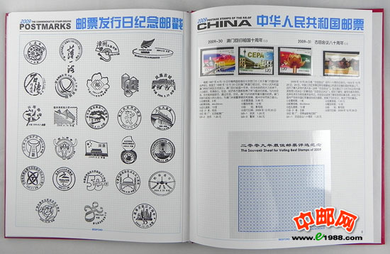 2009年册,包含2009年所发行的所有邮票及小型张,不含2009年评选纪念张。