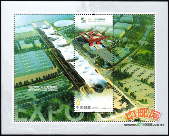 邮票介绍: 中国2010年上海世界博览会(EXPO 2010)于2010年5月1日至31日在我国上海举行。这是第一次在发展中国家举办的注册类世博会。本届世博会主题是“城市,让生活更美好”。自5月1日开幕以来,来自246个国家、国际组织的参展方,通过展示、论坛、表演等形式,一起探讨城市未来发展前景,共同谱写了一曲人类文明和谐共生的激情乐章,生动诠释了“理解、沟通、欢聚、合作”的世博理念。