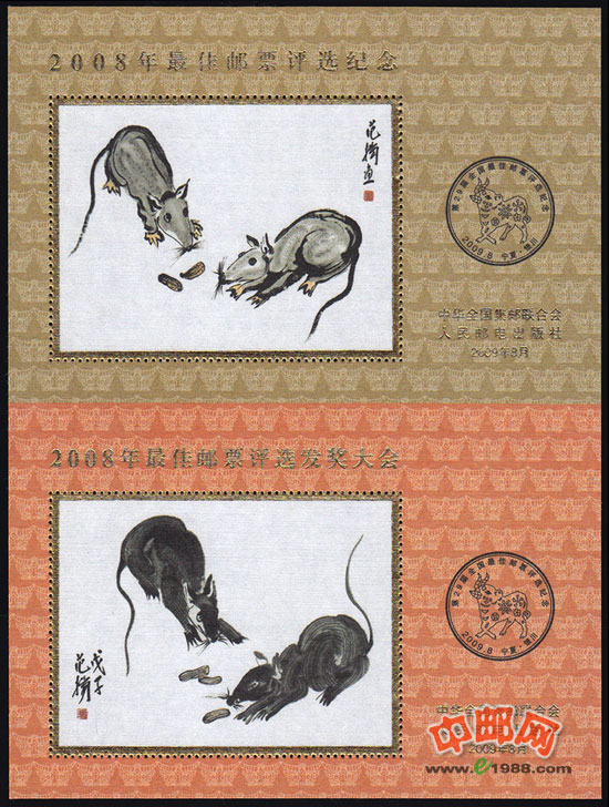 PX114 2008年最佳邮票评选纪念+发奖大会(丝绸)双连张