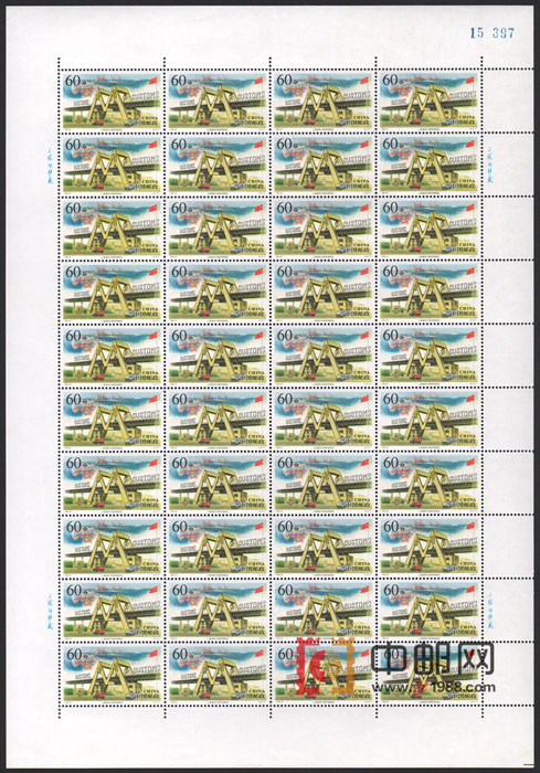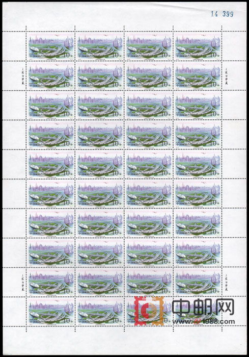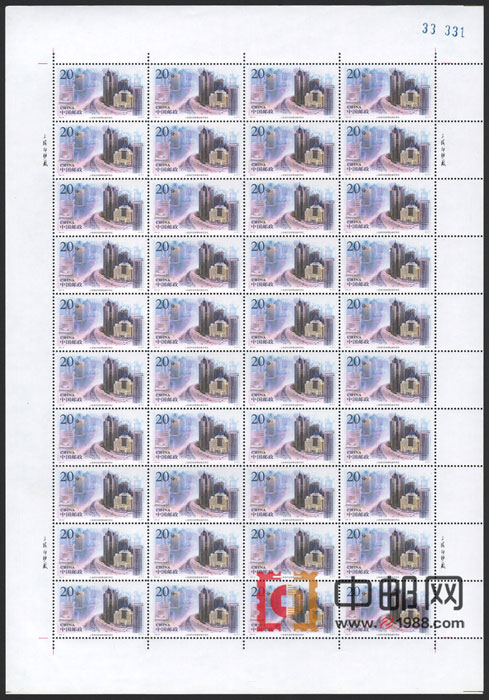 ZBP-1996-26 上海浦东(整版票),六张一版,一版40套票。上品,(6-1)上边纸有一个折痕。由于票幅较大,边纸可能会有少许小软折,属正常现象!购买请仔细查看大图。