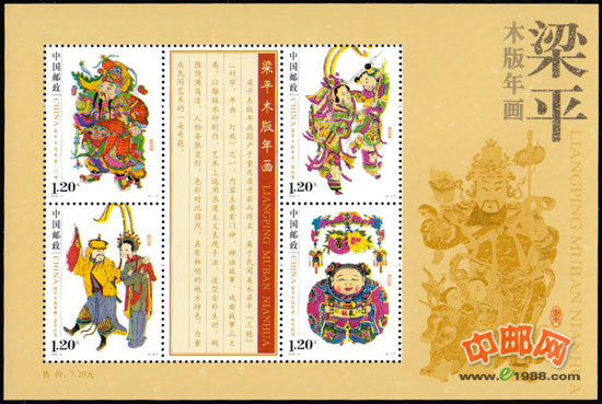 中国邮政局于2010年2月6日发行“梁平木版年画”小全张1枚,售价7.20元。为历年来木版年画邮票发行品种最丰富、版式最新颖的一枚小全张,具有较高的收藏和欣赏价值。