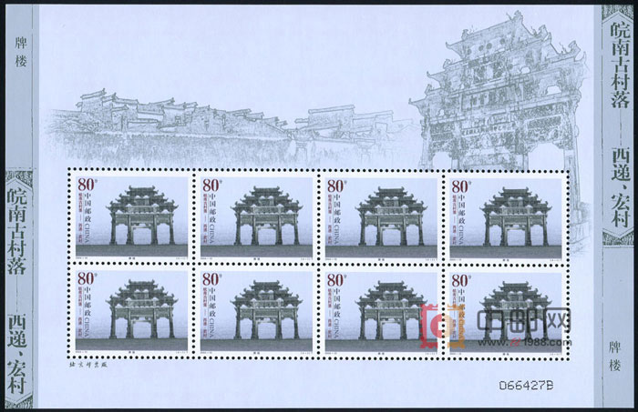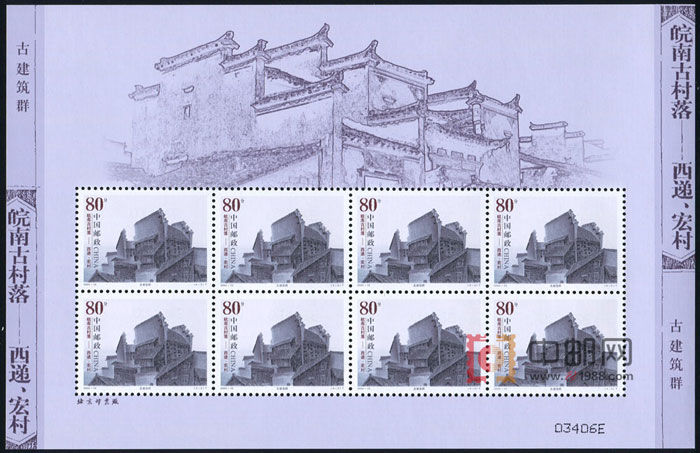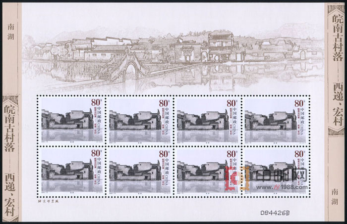 ZBP-2004-13 皖南古村落--西递、宏村(整版票),四张一版,一版8套票。全品,由于票幅较大,边纸可能会有少许小软折,属正常现象。购买请仔细查看大图。