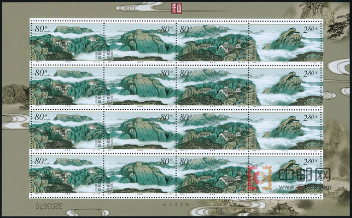 ZBP-2002-8 千山(整版票),一张一版,一版4套票。全品,由于票幅较大,边纸可能会有少许小软折,属正常现象。购买请仔细查看大图。