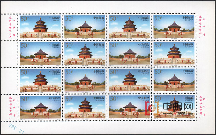 ZBP-1997-18 天坛(整版票),两张一版,一版8套票,上品。由于票幅较大,边纸可能会有少许小软折,属正常现象。购买请仔细查看大图。