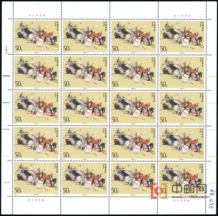 ZBP-1994-17 中国古典文学名著——《三国演义》(第四组)(整版票),四张一版,一版20套票。上品,由于票幅较大,边纸可能会有少许小软折,属正常现象。购买请仔细查看大图。