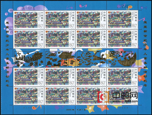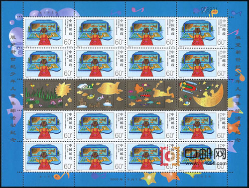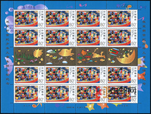 为迎接21世纪的到来,国家邮政局于1998年6月至1999年6月,在全国范围开展了“展望新世纪”儿童邮票设计竞赛活动。世界上三十多个国家和地区也同时举办了类似活动。儿童是世界的未来,也是新世纪的主人。参赛的小朋友展开他们纯真、丰富的想象,用他们稚嫩的画笔编织七彩的梦和对21世纪美好的憧憬。邮票图案选用邮票设计竞赛的8幅获奖作品。是迎接新世纪系列邮票的第二套。