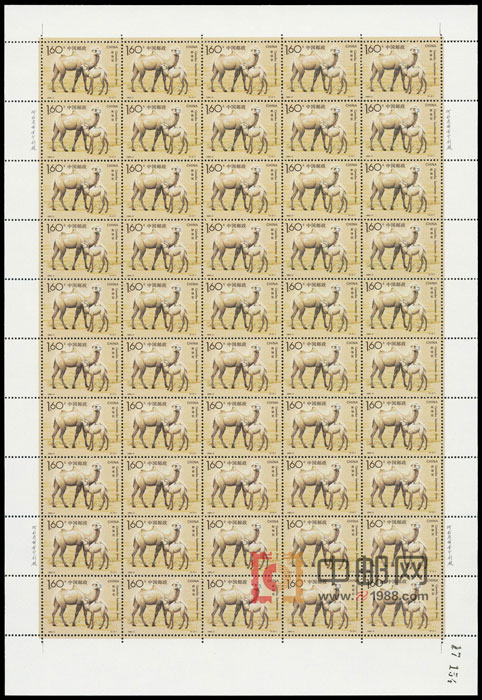 ZBP-1993-3 野骆驼(整版票),两张一套,一版50套票。全品,由于票幅较大,边纸可能会有少许小软折,属正常现象。购买请仔细查看大图。
