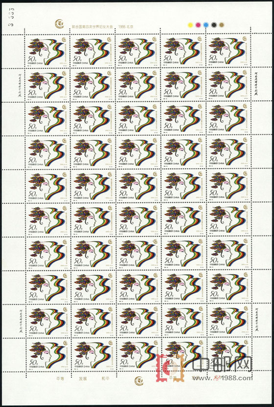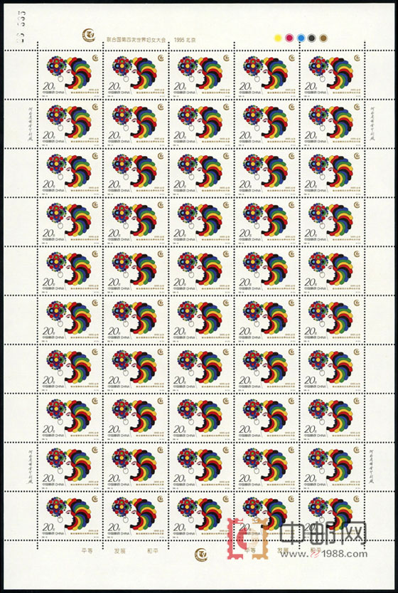ZBP-1995-18 联合国第四次世界妇女大会(整版票),四张一版,一版50套票。全品,由于票幅较大,边纸可能会有少许小软折,属正常现象。购买请仔细查看大图。