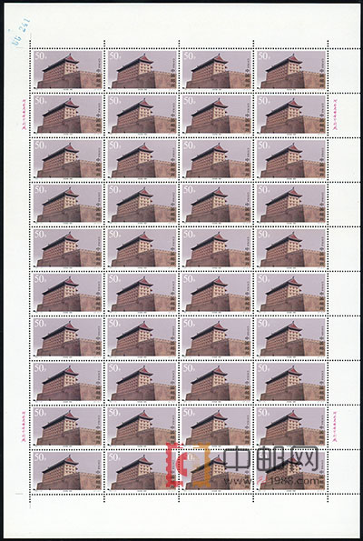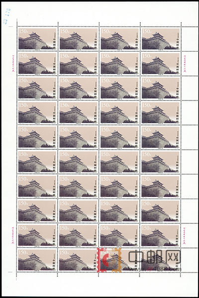 ZBP-1997-19 西安城墙(整版票),四张一版,一版40套票。全品,由于票幅较大,边纸可能会有少许小软折,属正常现象。购买请仔细查看大图。